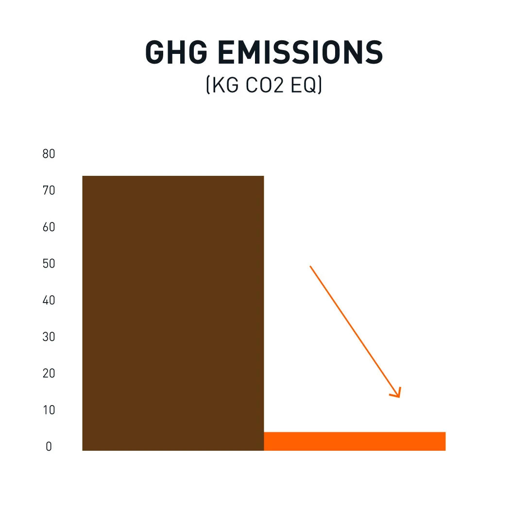 In comparison to animal leather, ELEVATE dramatically reduces environmental impact: